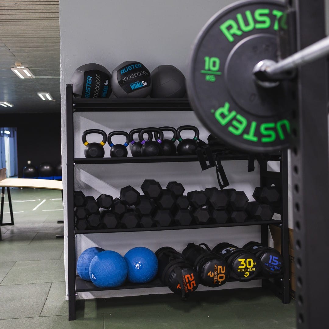El Rack Versátil de Ruster es una solución de almacenamiento multifuncional y robusta, diseñada para organizar de forma eficiente una amplia variedad de equipos de entrenamiento, como mancuernas, kettlebells, balones y otros accesorios funcionales. Su diseño inteligente permite mantener el material siempre ordenado, accesible y en óptimas condiciones, optimizando el espacio disponible en gimnasios profesionales, boxes de Crosstraining, estudios funcionales o espacios domésticos avanzados.