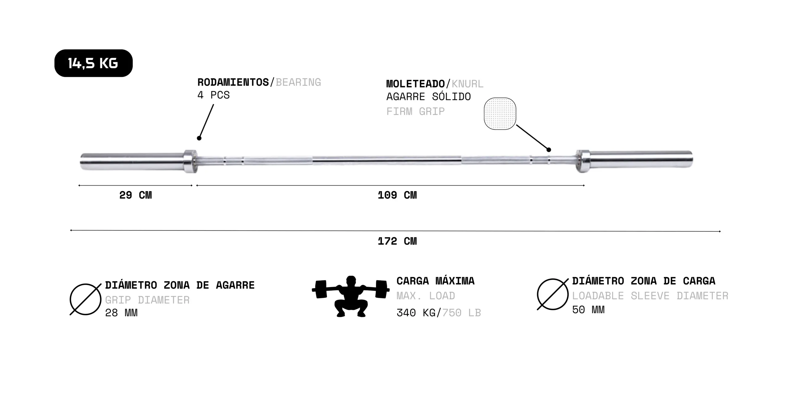 - Carga máxima: 340 kg