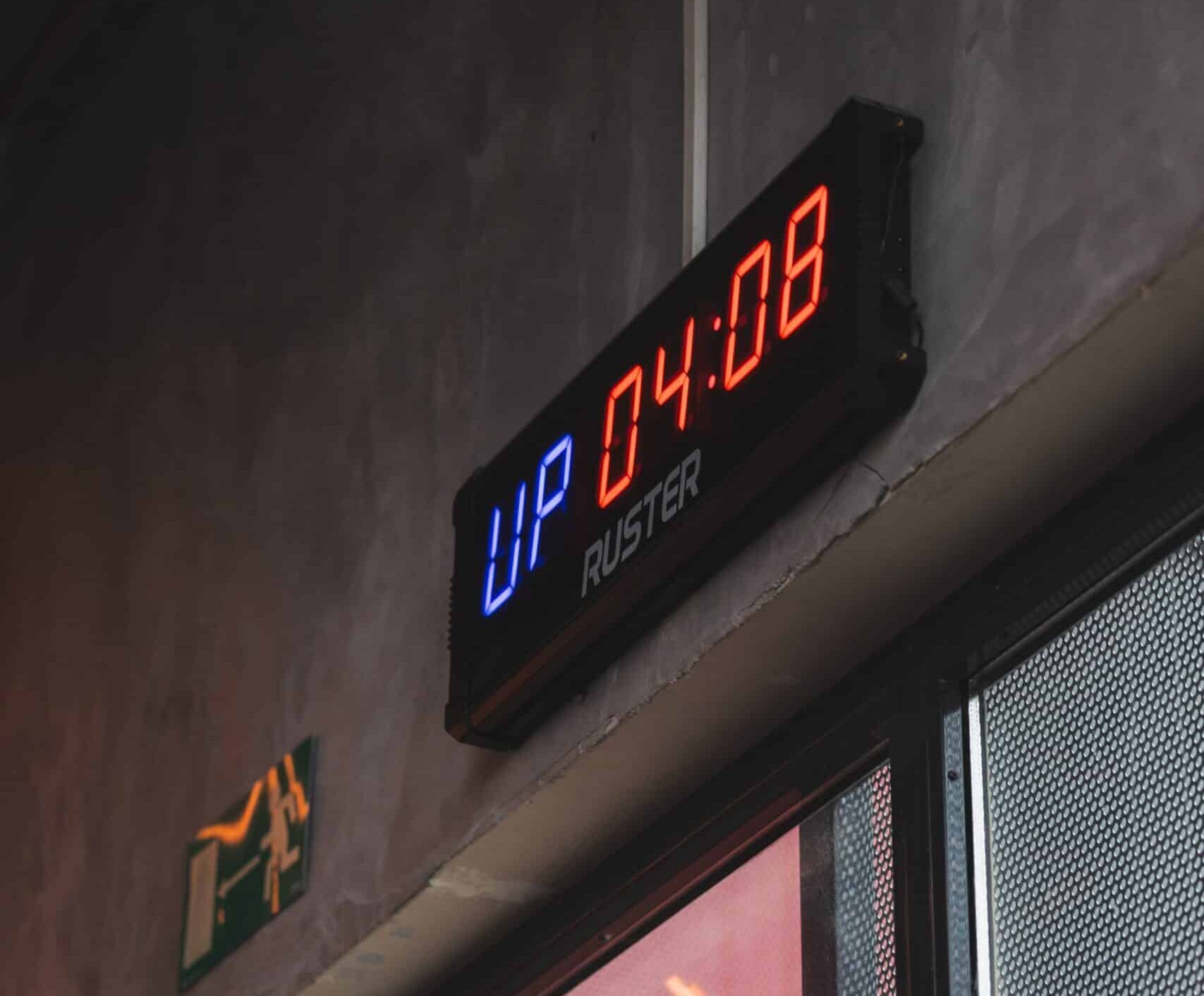 Este Timer cuenta con una señal sonora clara y potente. Además, su iluminación LED bicolor en azul y rojo facilita su visualización. Así, podrás seguir el tiempo sin esfuerzo incluso durante los entrenamientos más intensos. Su luminosidad y contraste garantizan que cada cuenta regresiva o progresiva sea perfectamente visible desde cualquier punto del espacio.